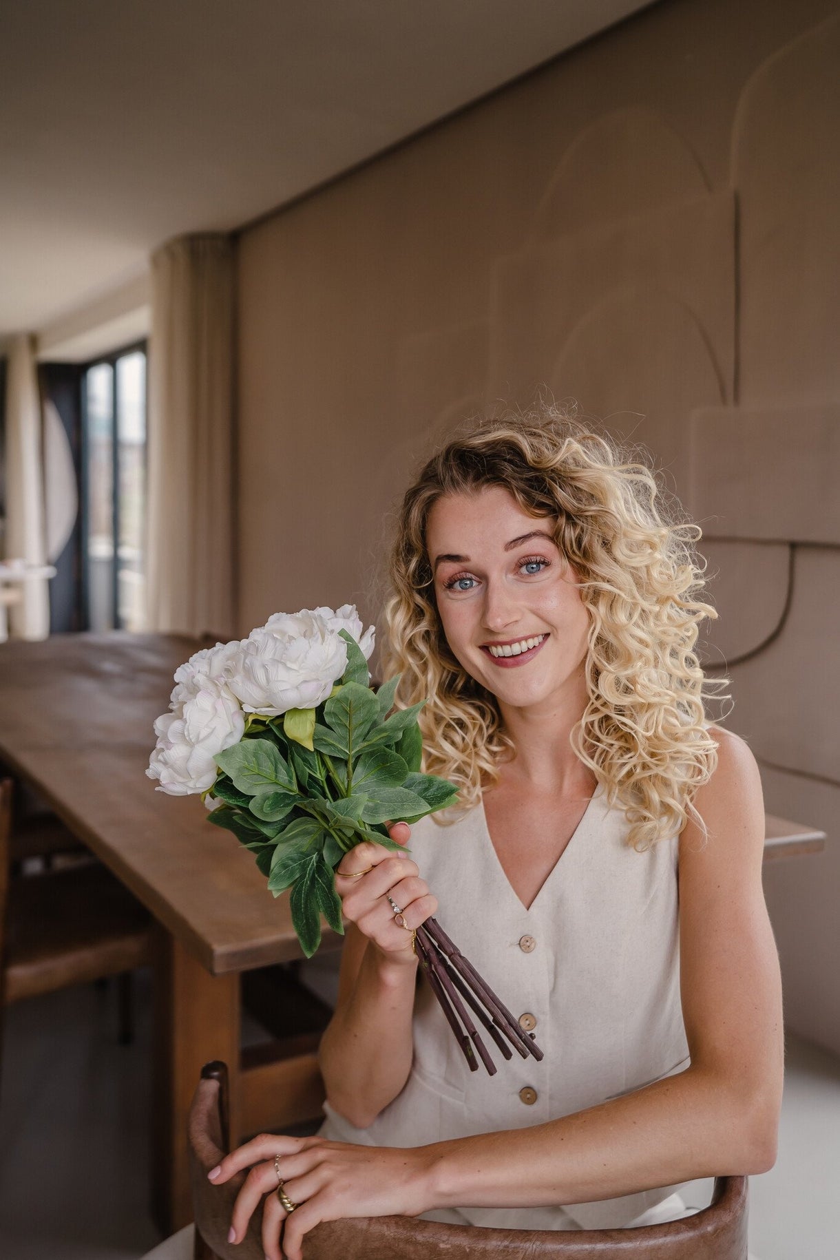 Verleihen Sie Ihrem Zuhause mit unserem künstlichen Blumenstrauß Pfingstrose in Weiß einen Hauch von Eleganz und Frische. Ideal für jeden Raum, sorgt dieser wunderschöne Strauß für eine einladende Atmosphäre, ohne dass Sie sich um die Pflege echter Blumen kümmern müssen.