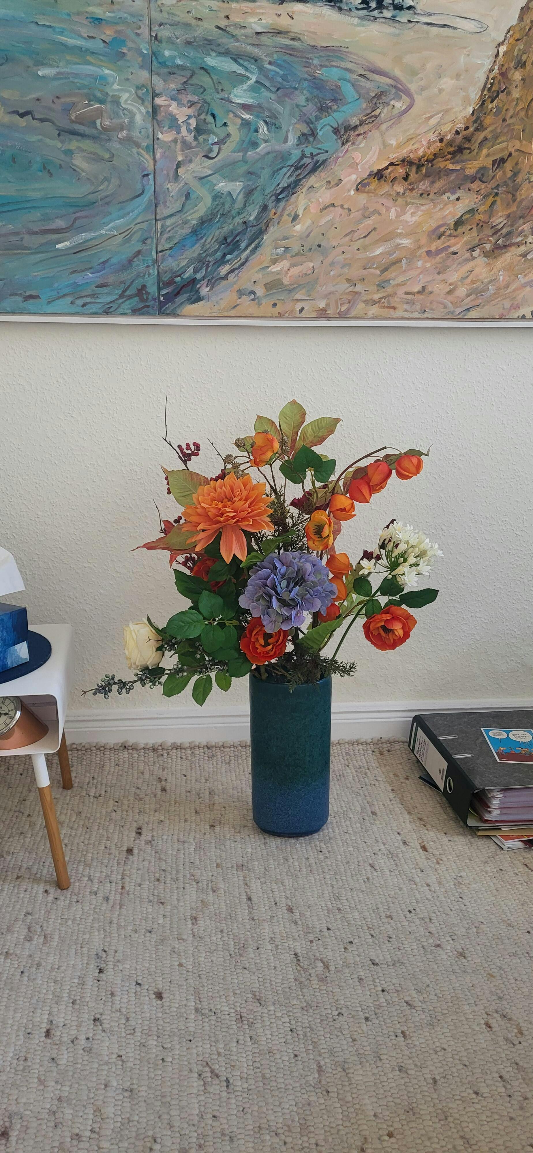 Verleihen Sie Ihrem Zuhause mit unserer beeindruckenden künstlichen Hortensie in lebendigem Blau einen Hauch von Eleganz und Frische. Diese exquisite Pflanze ist nicht nur ein optisches Highlight, sondern auch die ideale Lösung für alle, die die Schönheit von Blumen genießen möchten, ohne sich um die Pflege kümmern zu müssen.