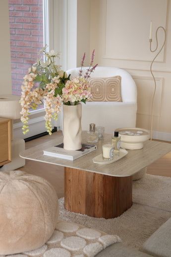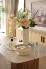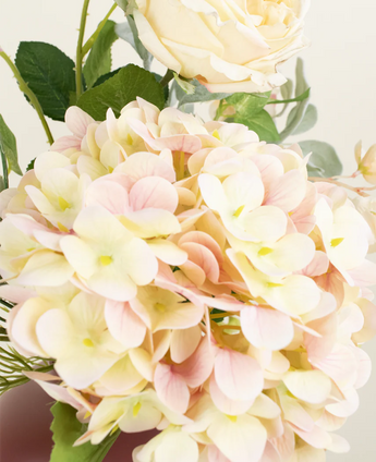 Weich, verträumt und elegant - der Seidenstrauß errötende Schönheit macht seinen Namen all die Ehre. Mit einer luftigen Mischung aus Creme, weißem, weichem Gelb und Lila strahlt dieser Bouquet Romantik und Verfeinerung aus. Ideal für diejenigen, die subtile Luxus und eine leichte, entspannende Atmosphäre im Haus mögen.