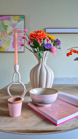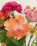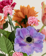 Der Bouquet enthält den auffälligen Agapanthus und den Anemone Deluxe in Purpur, den tropischen Hibiskus und die georgine echte Berührung in Orange und die ausdrucksstarke Nelke in hartem Rosa. Außerdem finden Sie weiche rosa und sonnige gelbe Gerberas, luftige Statikzweige und...