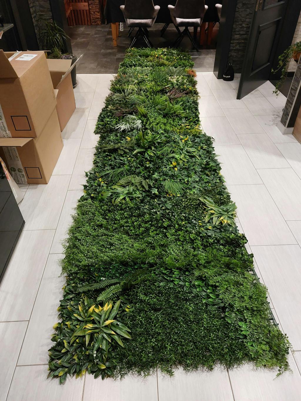 - Nehmen Sie die Kunstpflanze vorsichtig aus ihrer Verpackung. Achten Sie auf alle Befestigungen, wie z. B. Bänder oder Seile, die die Pflanze während des Transports an ihrem Platz halten.