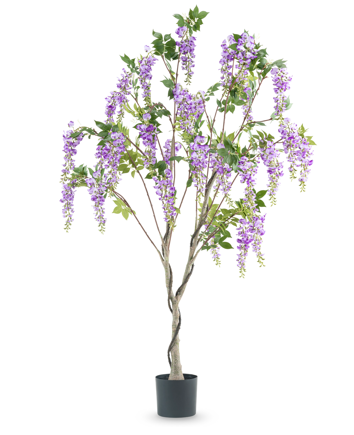 Bringen Sie Eleganz in Ihr Zuhause mit diesem künstlichen Blauregen. Mit einer Höhe von 180 cm und einer großzügigen Breite von 150 cm bietet diese üppige Kunstpflanze einen beeindruckenden, natürlichen Look - so realistisch, dass Sie zweimal hinschauen werden.