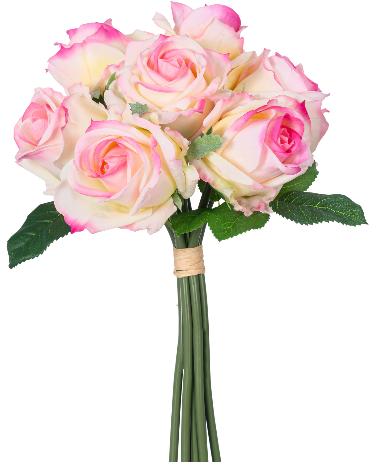 Künstlicher Rosenstrauß 7 Rosen Real Touch Creme/Rosa 30 cm
