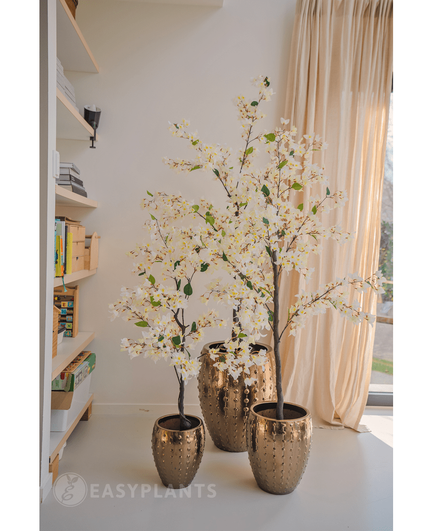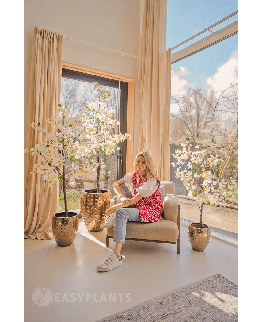 Unsere Kunstpflanzen sind von echten Pflanzen kaum zu unterscheiden. Wir verwenden hochwertiges Polyester, während die Stängel aus echtem Holz gefertigt sind, wodurch ein sehr natürliches Aussehen entsteht. Haben Sie immer noch Zweifel an der Qualität? Dann besuchen Sie doch einfach unseren Ausstellungsraum und überzeugen Sie sich selbst!