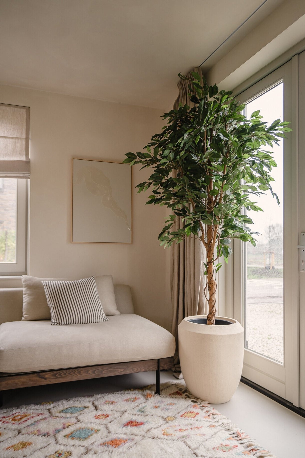 Unsere Kunstpflanzen sind von echten Pflanzen kaum zu unterscheiden. Wir verwenden hochwertigen Kunststoff, der nicht verblasst, und die Stämme sind aus echtem Holz gefertigt, was ihnen ein sehr natürliches Aussehen verleiht. Wenn Sie noch Zweifel an der Qualität haben, laden wir Sie ein, unseren Ausstellungsraum zu besuchen!