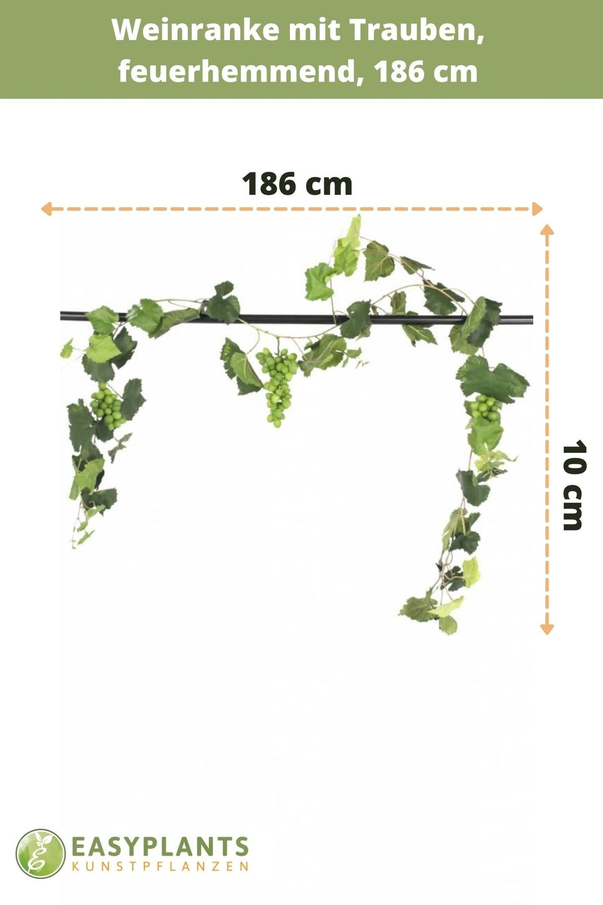 Verleihen Sie Ihrem Restaurant oder Café mit unserer feuerhemmenden Weintraubengirlande eine einladende Atmosphäre! Diese beeindruckende 186 cm lange Girlande besteht aus 54 realistisch aussehenden Seidenblättern und drei üppigen Büscheln grüner Kunststofftrauben, die das Herzstück jeder Dekoration bilden.